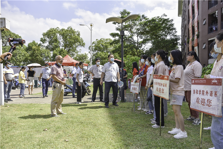 9月5日,福建师范大学协和学院2021级新生入学报到的第一天。一早,学院东侧门、西门就不断有新生抵达。院领导张华荣、应贵勇、张鹏程、杨林香、张娴带领学院办公室、党委宣传部、学生事务部、校区管理办公室(安全事务部)、院团委等相关职能部门负责人,深入各工作点、各系(学院)新生报到点检查指导迎新工作,看望慰问新生和家长、迎新工作人员、师生志愿者。