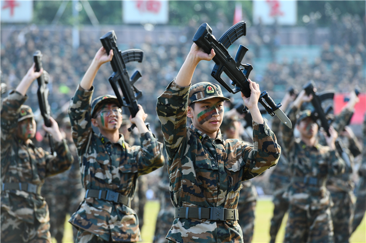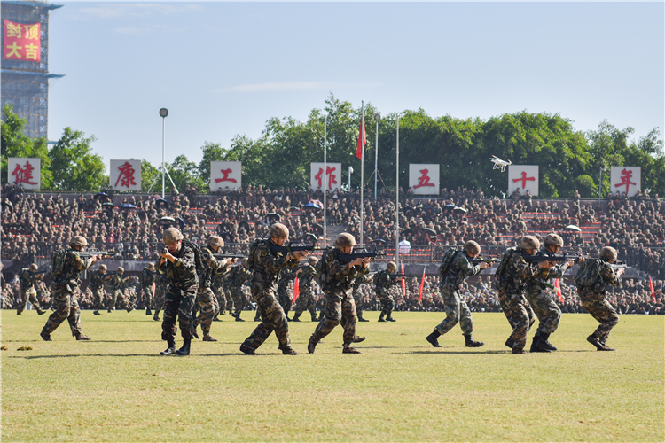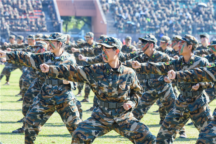 此次汇演除了各连队的训练方阵,还有战术动作、医疗救护、军体拳、刺杀操及匕首操战术展示。同学们用激昂的口号声和熟练的战术动作,展示了2021级军训学子风采。其中,军体拳和刺杀操由我院200名学生进行表演,他们规范的动作和飒爽的身姿赢得了现场阵阵掌声。