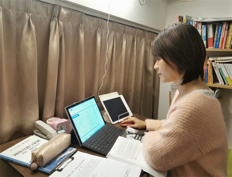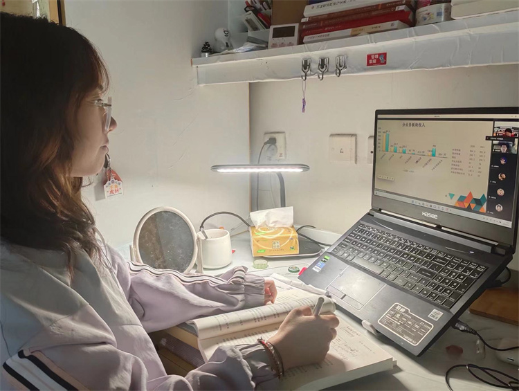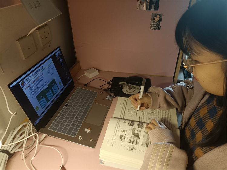 为了保障学习成效,2020级物流管理专业的缪彬彬是这样做的:“要给自己一种仪式感。一定要下床,换掉睡衣,端正坐在桌前,给自己一种‘我就是在教室上课’的感觉,这样能更好的进入状态;录屏回看,这有助于我更好的掌握知识点,特别是重点和难点,在回看中总能有新的收获。”此外,缪彬彬认为,还得加强锻炼,好的身体状态是学习的保障,因此,学习之余她会走出寝室、走向操场。