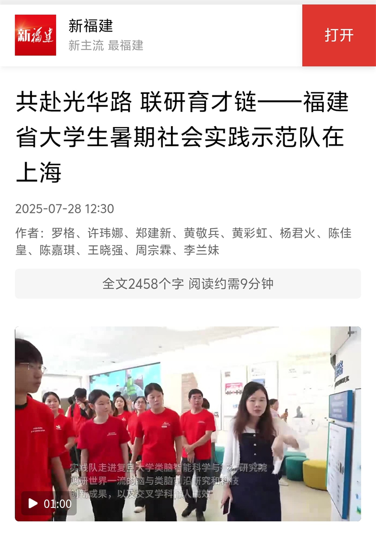 复旦大学作为中国人自主创办的第一所高等学校,培养了大批优秀人才,产出了许多原创性成果。近日,由福建师范大学、福建技术师范学院、福建师范大学协和学院组成的“追寻领袖足迹 担当强国使命”2025年福建省大学生暑期社会实践示范队走进复旦大学,深入学习习近平总书记给复旦大学的回信和贺信精神,探访《共产党宣言》展示馆、对话星火党员志愿服务队,参观深化教育科技人才一体化改革专题展、科技成果展,调研复旦大学张江研究院、类脑智能科学与技术研究院、张江国际脑影像中心,以教育、科技、人才“三位一体”协同融合发展为主线,探寻高等院校助力上海高质量发展的实践密码。