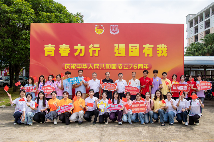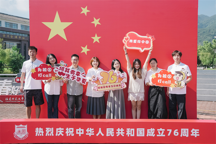 为热烈庆祝中华人民共和国成立76周年,弘扬爱国主义精神,厚植文化自信,10月1日上午,福建师范大学协和学院在榕苑广场举办“青春力行 强国有我”国庆主题游园活动。活动以沉浸式文化体验、互动式趣味挑战等形式,将爱国教育、传统文化与青春活力深度融合。校长郑家建,校党委副书记吴剑锋,院领导陈林男、戴文坤,学院相关职能部门、各系(院)学生工作负责人与上千名师生共同为祖国献上深情祝福。