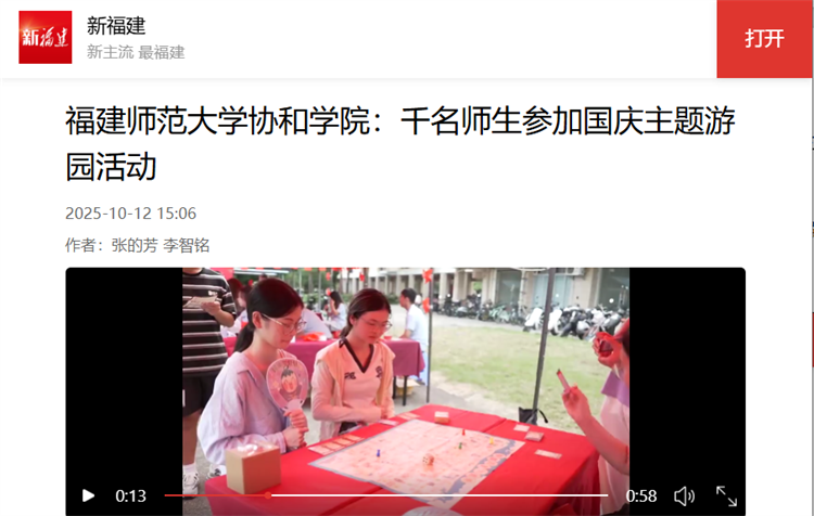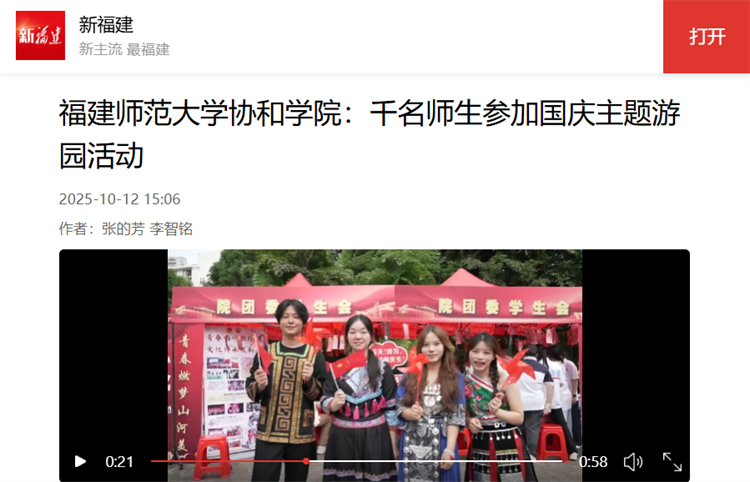 10月12号,新福建报道建师范大学协和学院举办“青春力行 强国有我”国庆主题游园活动,上千名师生共同为祖国献上深情祝福。