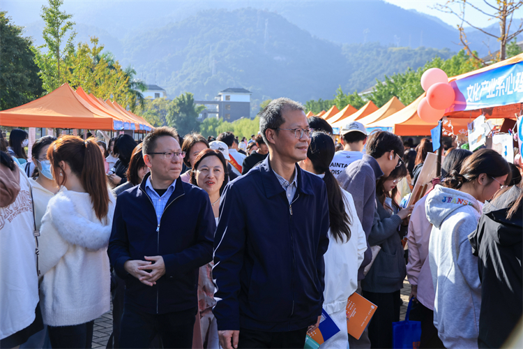福建青年人才开发中心主任潘建宇,福建青年人才开发中心市场部副经理陈珠,学院党委副书记、纪委书记戴文坤,院学生事务部负责人,文化产业系党政负责人及2026届毕业班辅导员深入现场,实地了解企业招聘需求与毕业生求职情况。