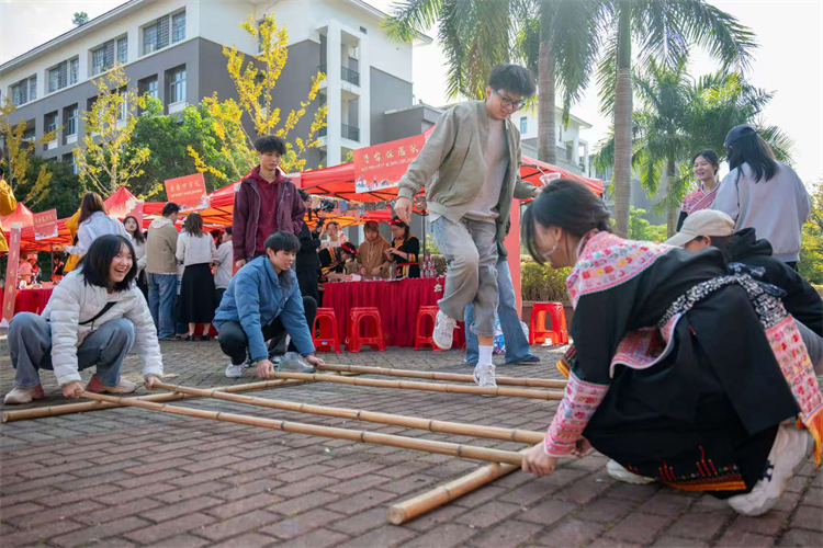 身着歌仔戏、莆仙戏戏服的学子们,现场指导同学们研习戏曲身段、模仿经典手势;惠安女服饰体验、南音现场演绎,尽显海滨古城韵味;拳脚有力、招式利落,“六合拳”武术表演点燃现场气氛“叮铃叮铃”苗族银饰平安符制作,热情洋溢的畲族竹竿舞互动,协和学子现场体验少数民族风情。
