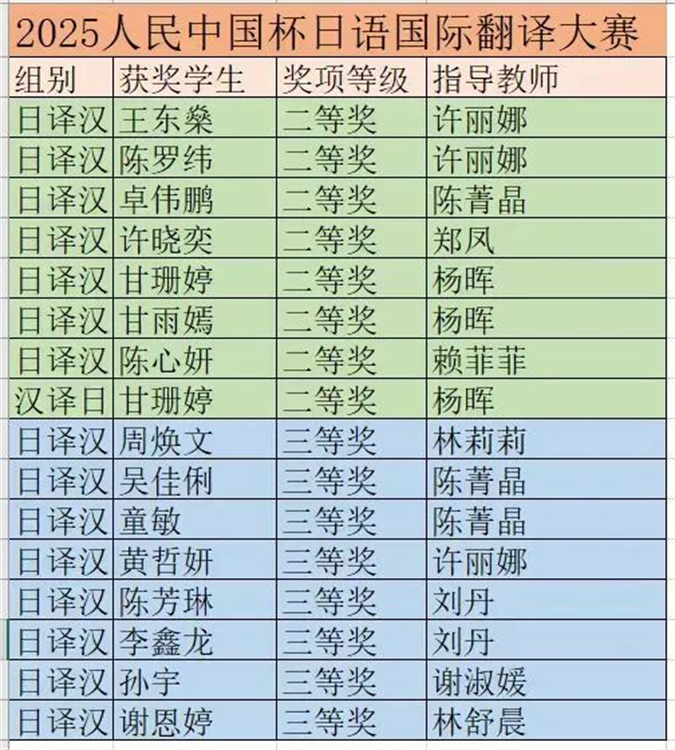 近日,第八届“人民中国杯”日语国际翻译大赛正式落下帷幕。福建师范大学协和学院外语系学子在日译汉、汉译日组别共斩获二等奖8项、三等奖8项。