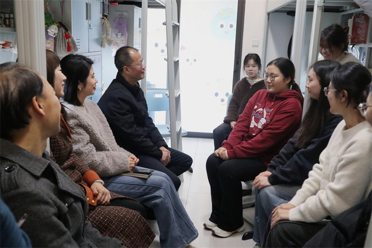 课后,戴文坤副书记携学生事务部主任、国际商学系党政负责人等一行深入星魁楼学生宿舍,实地了解学生学习生活情况。走访过程中,戴副书记仔细查看了宿舍设施配备,关切询问同学们期末复习情况,叮嘱大家要科学安排时间,做到劳逸结合。在与困难党员交流时,戴副书记耐心解答了同学们在职业规划和就业方向上的困惑,结合国家发展战略和市场需求,为同学们提供了切实可行的就业指导建议。他特别强调,学生党员要在宿舍生活中发挥先锋模范作用,带头营造积极向上、团结互助的宿舍文化氛围。