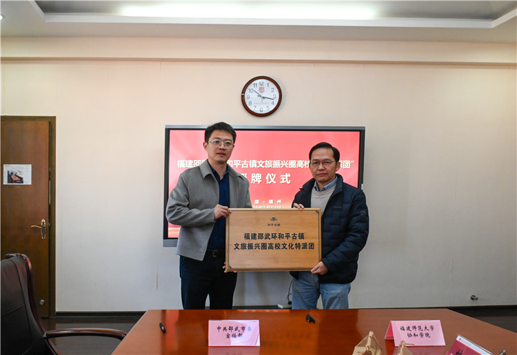 在与会人员的共同见证下,张晟部长与杨林香院长共同签署了《高校文化特派团助力乡村振兴框架协议》。随后,双方相继举行了福建师范大学协和学院“实践教育基地”及福建邵武“环和平古镇文旅振兴圈高校文化特派团”授牌仪式,标注着校地合作迈入了实质性推进阶段。