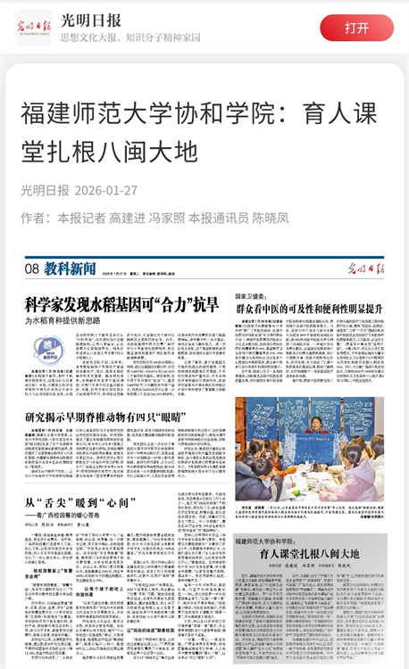 1月27日,《光明日报》教科新闻版块报道福建师范大学协和学院七支重点实践队分赴福建省宁德、邵武、莆田等地,以“行走的思政课”为载体,将思政小课堂与社会大课堂深度融合。