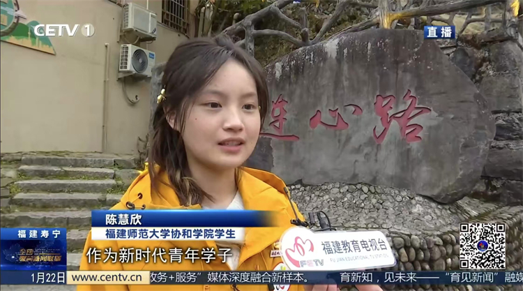 1月22日,中国教育电视台报道福建师范大学协和学院开展2026年寒假社会实践,感悟乡村蝶变,在社会实践中谱写青春之歌。