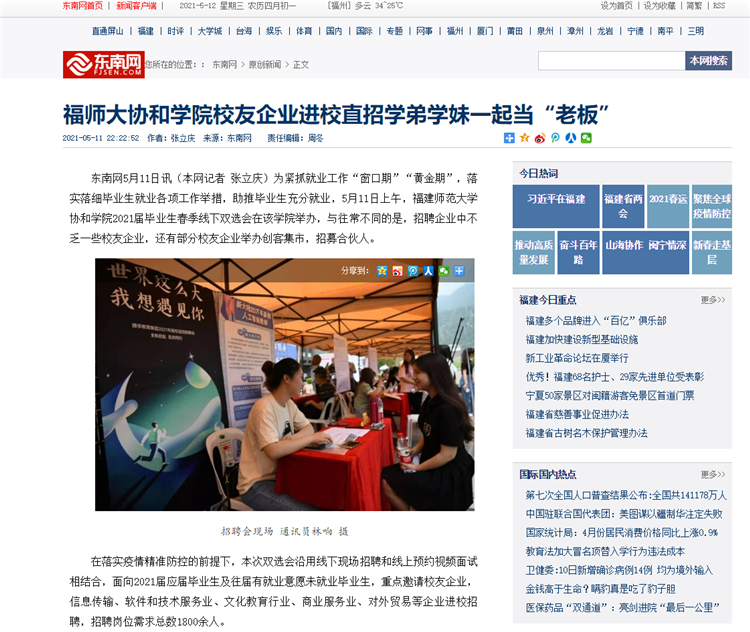 5月11日,东南网报道福师大协和学院校友企业进校直招学弟学妹一起当“老板”。