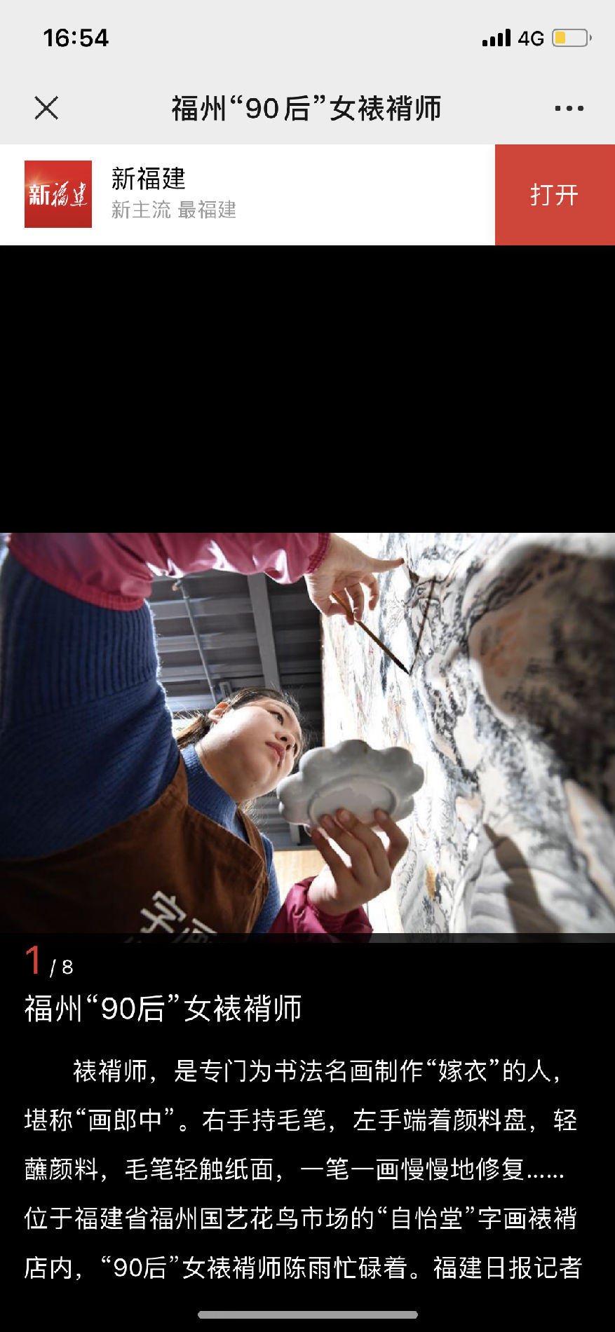 《福建日报》新福建报道福州“90后”女裱褙师。