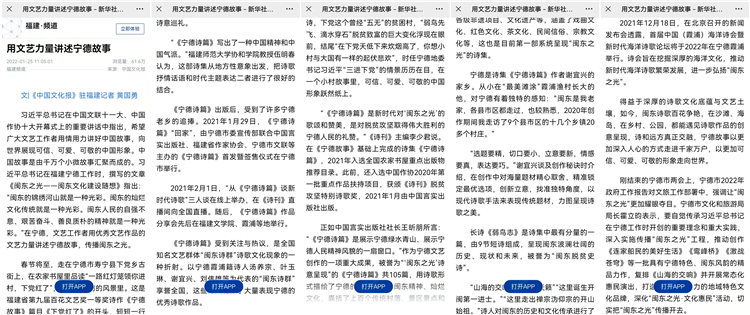 得益于深厚的诗歌文化底蕴与文艺土壤,如今,闽东诗歌百花争艳,在沙滩、海岛,在乡村、公园,都能遇见诗歌作品的创意呈现,诗和远方真正交融,宁德故事以更加深入人心的方式走进千家万户,以更加可信、可爱、可敬的形象走向世界。