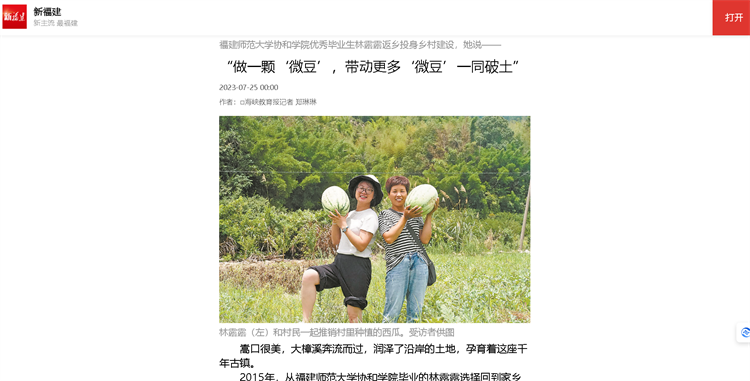 7月25日,新福建报道福建师范大学协和学院优秀毕业生林露露返乡投身乡村建设的先进事迹。