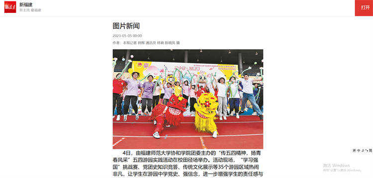 5月5日,新福建报道“传五四精神,扬青春风采”五四游园实践活动。