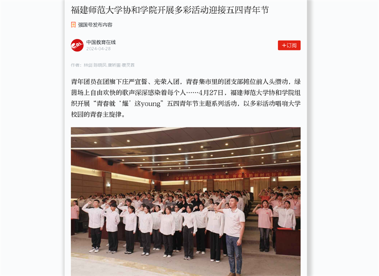 学习强国:福建师范大学协和学院开展多彩活动迎接五四青年节