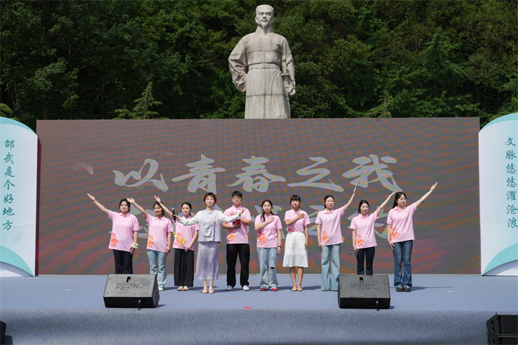 活动现场,文化产业系旗帜艺术团精心编排四个节目,为邵武市民呈现了一场沉浸式的文化体验。情景朗诵《青史留心》以邵武先贤李纲的《武夷山赋》为脚本,再现历史文人的铮铮风骨;读书分享《星空下的征途》立足青年视角,以读书分享传递阅读力量;女声小组唱《又唱浏阳河》与女声独唱《我的祖国》则以经典旋律唤醒红色记忆,抒发爱国情怀,将整场演出推向情感的高潮。整场演出情感层层递进,赢得观众的热烈掌声。