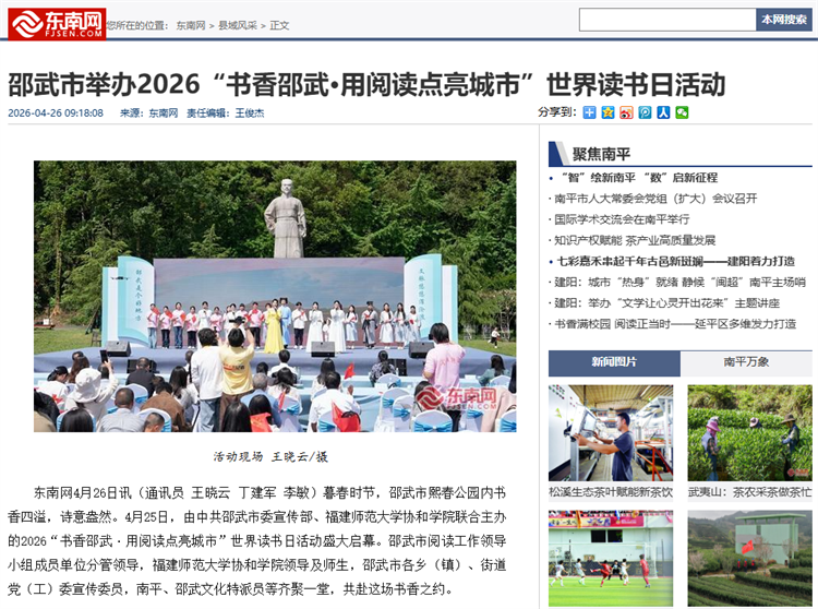 东南网:邵武市举办2026“书香邵武·用阅读点亮城市”世界读书日活动