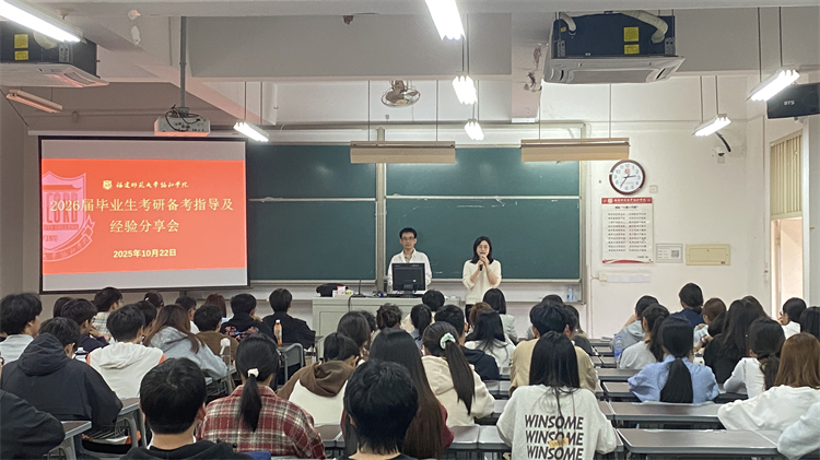 10月22日下午,福建师范大学协和学院学生事务部在河西A2-201教室组织开展研究生备考专题指导会,邀请行业专家和优秀校友进校传授,帮助同学们早做规划、科学备考,吸引了众多2026届毕业生前来参加。