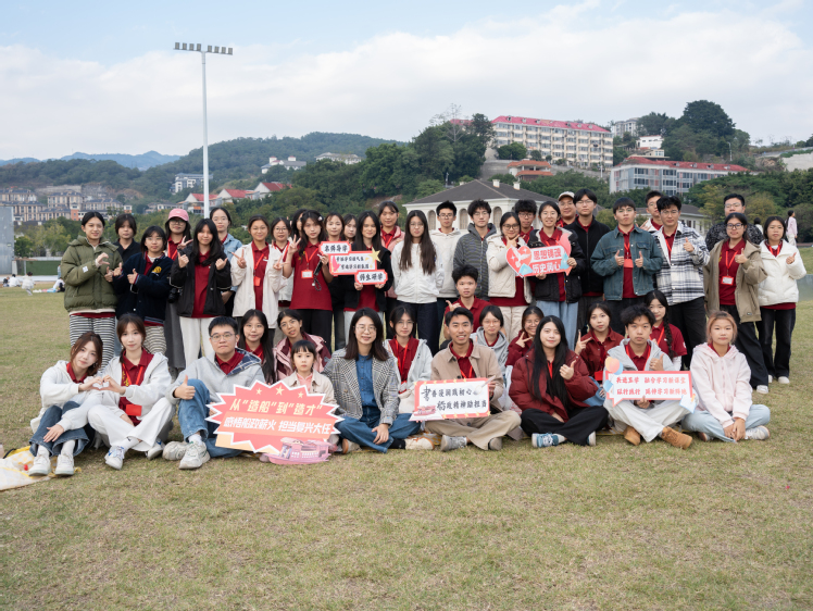 参观完毕,读书社成员们围坐在船政大草坪,聆听习近平新时代中国特色社会主义思想读书社党支部书记朱琳老师传授《从“造船”到“造才”——感悟船政薪火 担当复兴大任》主题微党课,师生共学党的二十届四中全会精神,交流参观感悟、畅谈成长规划,思想碰撞间让初心使命愈发清晰。随后,“激流勇进”“呼啦圈连连看”等团建醒目接连上演,大家在默契协作中打破隔阂、凝聚合力,深刻感受船政“众志成城”的协作精神。