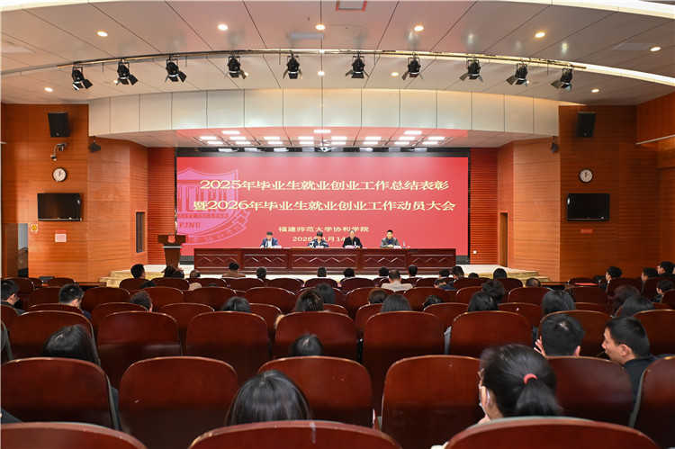 1月14日,福建师范大学协和学院在学术报告厅召开2026年毕业生就业创业工作会议院领导杨林香、戴文坤、黄滨、卢宇,院毕业生就业创业工作领导小组成员,就业专班成员各院系党政负责人,全体思政辅导员以及受表彰先进个人参加会议。会议由院党委副书记、纪委书记戴文坤主持。