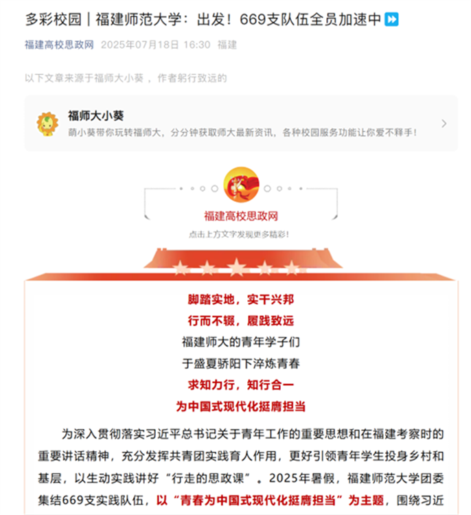 福建高校思政网:多彩校园丨福建师范大学:出发!669支队伍全员加速中