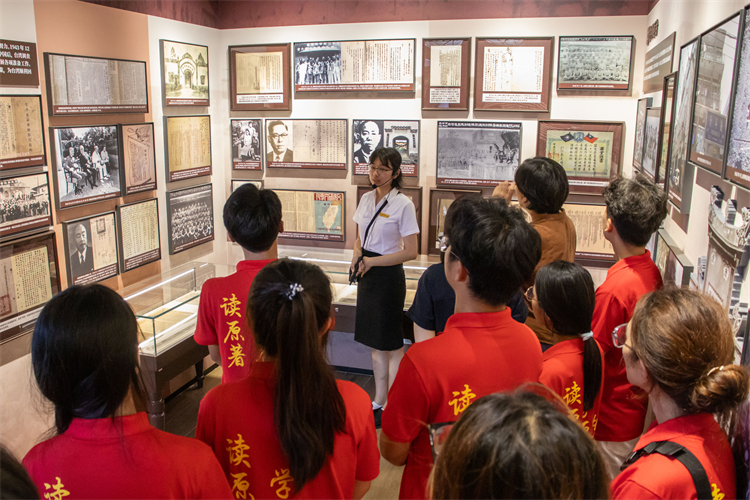 活动伊始,师生们围绕《中华民族共同体概论》教材开展了“习近平总书记关于民族工作的重要论述”专题学习。由支部书记领学相关内容,党员教师结合“民族理论与政策”分享教学案例,读书社学生代表畅谈学习体会。随后,师生们参观了“义勇挥戈同心复疆——台湾义勇队档案文献展”和“烽烟淬魂 共铸中华”——纪念中国人民抗日战争暨世界反法西斯战争胜利80周年和台湾光复80周年图片展。在讲解员的讲解下,师生们回顾了全民族抗战的峥嵘岁月,深入了解了1937年到1946年间台湾义勇队从筹组、抗战活到返台的民族记忆,深刻感受到两岸同胞团结一心、共御外侮的伟大精神。