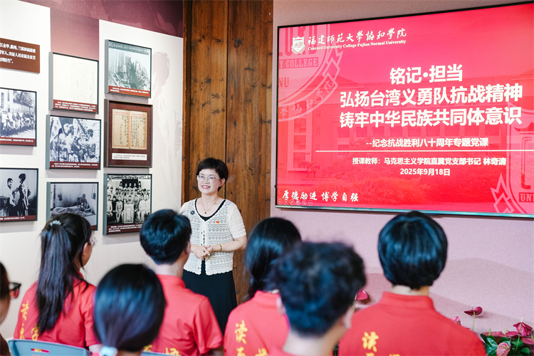活动中,马克思主义学院直属党支部书记林奇清副教授为师生们讲授了题为“铭记·担当:弘扬台湾义勇军抗战精神 铸牢中华民族共同体意识”的专题党课。