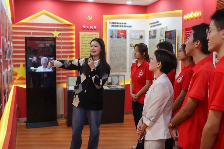 马克思主义学院硕士研究生许晓婷(协和学院2024届毕业生)指着1990年代的备课笔记:“前辈们就是这样一笔一划,把马克思主义理论讲进学生心里。”青马班同学在“马克思主义中国化”展区前驻足,墙上的人才照片墙里,深耕研究的领军学者与“把论文写在田野上”的青年教师,让“学科初心”有了具体模样。