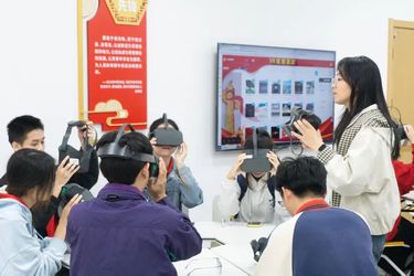 福建师范大学马克思主义学院2025级学科思政专业硕士研究生黄思盈带领师生们利用实验室虚拟现实技术,将抽象的马克思主义理论转化为直观生动的场景,让师生们在互动中深刻理解理论的内涵与实践意义。