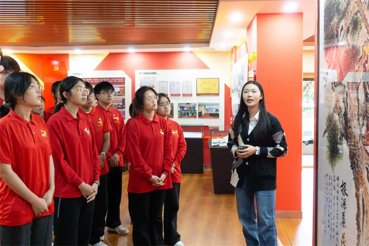 此外,师生一行人还组织参观了马克思主义理论学科群展览馆。马克思主义学院硕士研究生、协和学院2024届毕业生许晓婷担任讲解员,通过丰富的历史文物和详实的史料,生动展现了福建师范大学马克思主义理论学科的发展历程和辉煌成就。
