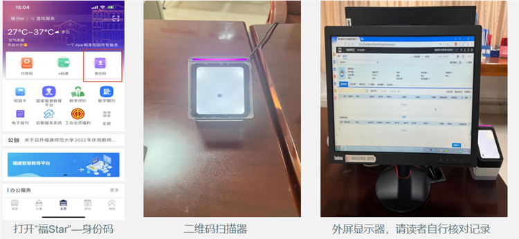 ①打开「福star」APP→点击「身份码」②将二维码对准闸机扫码区,“滴”一声即可开门。