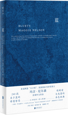 本书是一部散文作品集, 由240段关于蓝色的哲思随笔组成。在这些笔记式的文字之中, 玛吉·尼尔森通过诗一样的语言, 以及对文学史、文化史、艺术史的旁征博引, 对蓝色, 这一人类历史中被最喜爱的颜色进行了思考。她不仅仅将蓝色与文学、艺术和诗意相连, 更将自身的个人磨难、爱与欲望与蓝色进行勾连, 完成了一部奇妙又无法被定义的蓝色之书。
