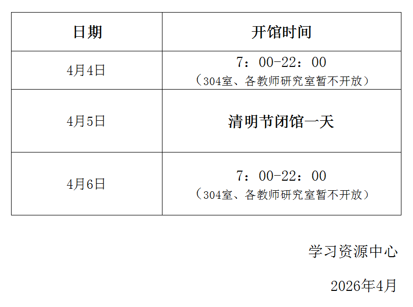 协和学院图书馆关于2026年清明节调整开放时间的通知