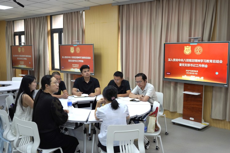 本次会议聚焦“深入贯彻中央八项规定精神学习教育”,回顾总结了文化产业系学习教育开展情况与成效,传达学习了中央、省委、校及院党委相关会议精神,并就推动作风建设常态化、长效化作出部署。