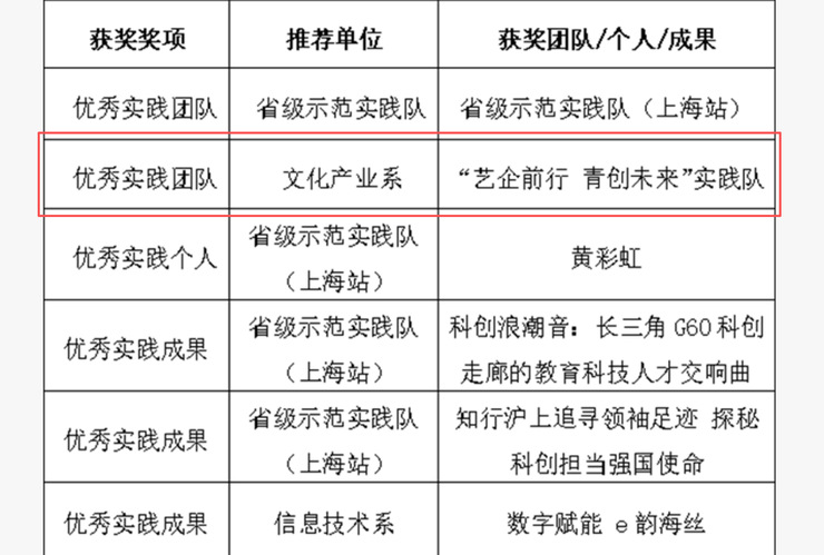 近日,中共福建省委教育工作委员会公布“追寻领袖足迹 担当强国使命”2025年全省大学生暑期社会实践活动评选结果。我系“艺企前行 青创未来”实践队荣获优秀实践团队。此前,在学院2025年暑期社会实践评比活动中,我系暑期社会实践队喜获第一名。