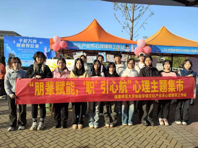 为有效缓解学生在职业发展中的焦虑与困惑,扎实推进心理育人工作,11月26日,福建师范大学协和学院文化产业系在学习资源中心门前举办“朋辈赋能,‘职’引新航”心理主题集市活动。本次活动以轻松趣味的互动形式,为学生打造了一堂“在体验中疗愈,在参与中成长”的心理实践课。