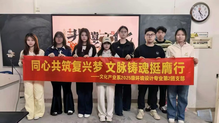 近日,文化产业系2025级环境设计第2团支部围绕“同心共筑复兴梦,文脉铸魂挺膺行”主题,组织开展系列团立项活动,引导支部成员深入理解中华文脉,践行青春使命当担的奋进姿态。
