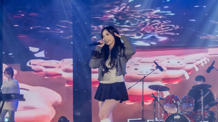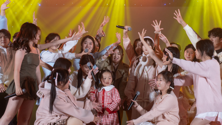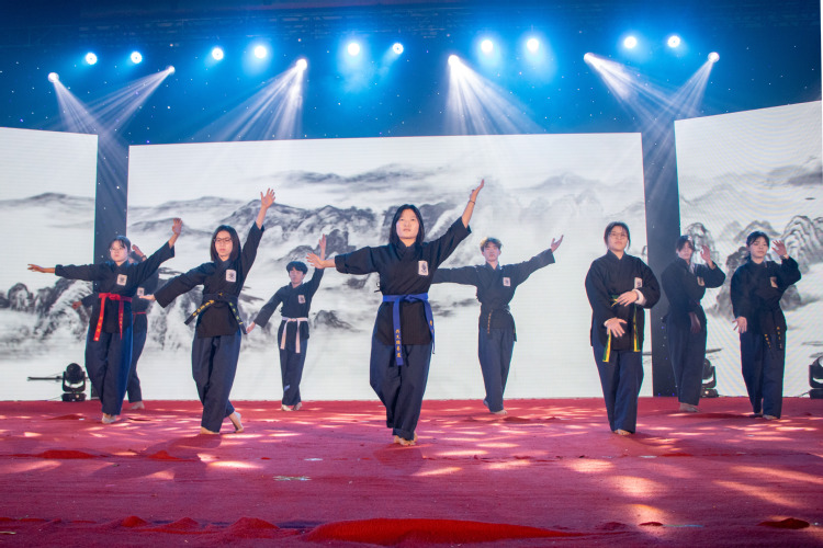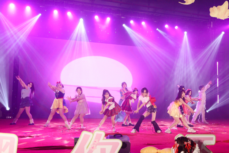 第二篇章“QQ空间:说说你的空间热评”亮点纷呈。《绘童年》以民乐的典雅韵味碰撞奇幻记忆,让观众深切感受到传统与现代交织的独特魅力;配音秀《当代大学生实况》通过配音与动画片的巧妙嫁接描绘大学生活的日常点滴,从不同视角塑造新时代师生形象;教职工朗诵的《老师的爱》,以真挚幽默的话语传递深厚师恩,温暖全场;跆拳道表演《发如雪》《旋风少女》与K-POP舞蹈串烧《美女和她的十二个美女》相继登场,刚柔并济的舞台魅力与青春朝气溢满全场。