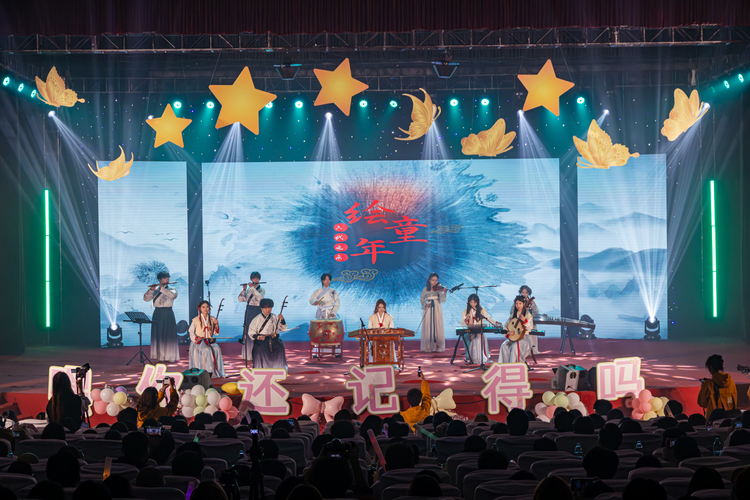 晚会在温馨的童年影像与现场访谈中拉开帷幕。第一篇章“动画城:我的遥控器我做主”率先点燃观众热情。乐队演绎儿时动画片《梦回还》与《猪猪侠》经典曲目,活泼的音律瞬间将观众带回无忧无虑的童年时光;舞蹈串烧《时间胶囊》与歌曲串烧《我们都变小啦》轮番登场,灵动的舞姿、熟悉的画面与旋律交织,唤起全场观众的集体童年记忆。