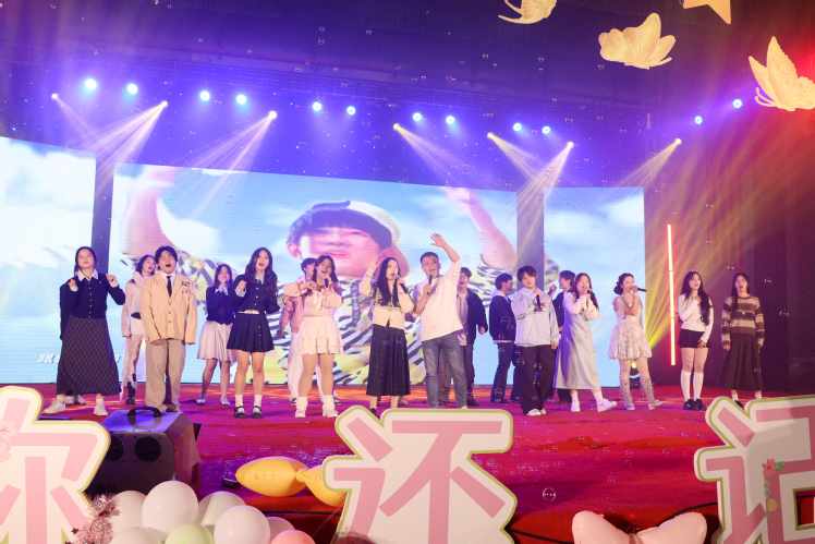 在第三篇章“颁奖礼:属于我们的青春盛典”中,歌曲串烧《谁的DNA又动了》精选流行金曲引发所有观众共鸣;创意小品《甄嬛传之外卖风波》将经典影视剧与现代外卖巧妙结合,幽默风趣的表演让人捧腹大笑;舞蹈《幻想童话》以梦幻般的编舞展现学生的无限创意;走秀《次元行》通过跨次元造型展现学生的独特风采。晚会尾声,师生共同演绎歌伴舞《我乘着风飞过来》,在歌声与舞姿中寄托对未来的美好展望。