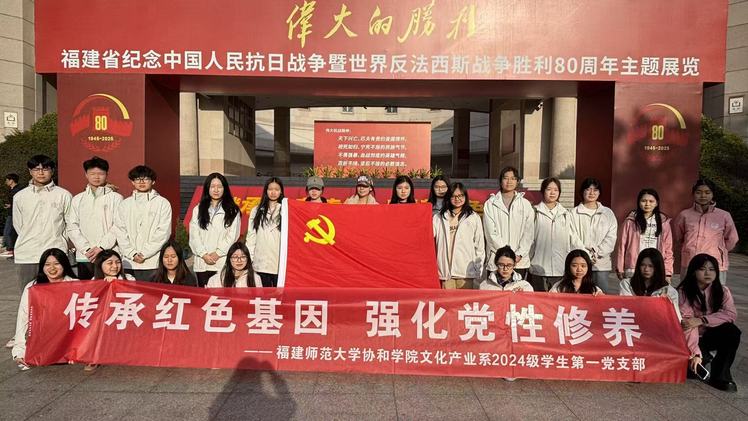 为深入学习宣传贯彻党的二十届四中全会精神,引导支部党员赓续红色血脉、筑牢信仰根基,12月14日,文化产业系2024级学生第一党支部组织全体党员赴福建省革命历史纪念馆,开展“传承红色基因 强化党性修养”主题党日活动。
