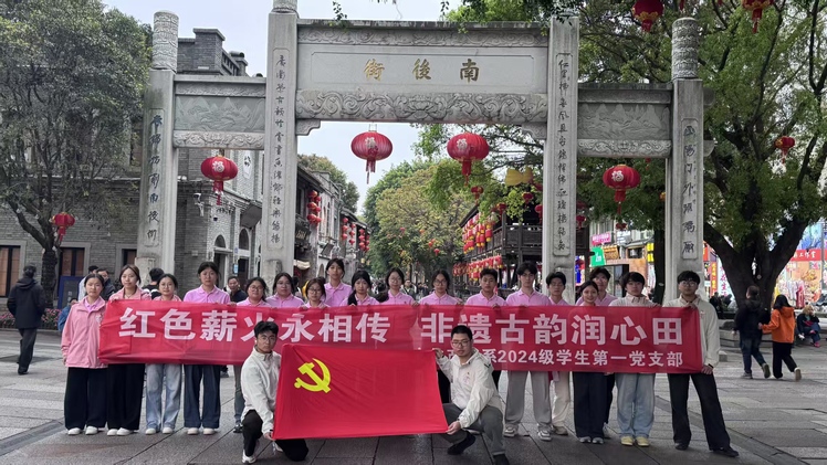 为深入学习贯彻习近平新时代中国特色社会主义思想,推动红色基因传承与中华优秀传统文化传承深度融合,引导青年党员在沉浸式实践中坚定文化自信、厚植家国情怀,4月8日,文化产业系2024级学生第一党支部前往福州三坊七巷开展“红色薪火永相传,非遗古韵润心田”主题党日活动。