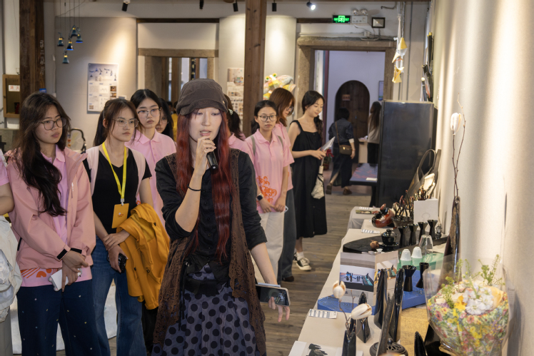 开幕式上,副院长黄滨致开幕词。他表示,又是一年春暖花开时,文化产业系学子迎来了属于自己的专业成果汇报,希望毕业生们坚守匠心,以创意赋能传统文化传承,书写青春新篇章。随后,优秀校友代表引导嘉宾与观众步入展厅,逐件品评作品,并结合自身行业经验与创作感悟,对作品的创意构思、技艺表达、文化内涵进行了细致解读与专业点评,让现场观众更深刻地领略作品背后的巧思与匠心。