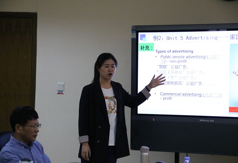会上,四位商务英语教研室老师分别阐述了自己关于课程思政教学设计的观点。廖晓丹老师首先介绍了会议主题对于商务英语专业的重要意义,并分享了《商务英语阅读》中的思政元素,从课程导入、背景知识、文本分析和文化理解四个方面探讨了如何挖掘课程思政素材。林妹妹老师以《综合商务英语》中的公益广告为例,从正反两方面的案例说明如何将思政元素融入教学。庞慧英老师所教授的《中国社会与文化(英文)》课程中蕴含着丰富的思政元素,她以中国传统文化中的生态意识为例,展示了课程思政教学的实施过程。王朝晖老师分享了《旅游英语》课程中“红色旅游”的课程思政设计,并以福建为例展示了中国革命老区红色旅游景点的相关知识。