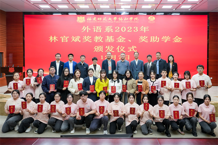 12月7日下午,2023年林官斌奖教基金、奖助学金颁发仪式在学术报告厅举行。福建师范大学协和学院外语系“林官斌奖教基金、奖助学金”捐助人、福建安健致远国际贸易有限公司董事长林官斌先生,院领导陈林男、杨林香、戴文坤、黄滨、卢宇,学院办公室、学生事务部、教务部负责人,外语系党政负责人、全体教职工及部分学生代表参加本次活动。颁发仪式由外语系党总支书记陈跃聪主持。