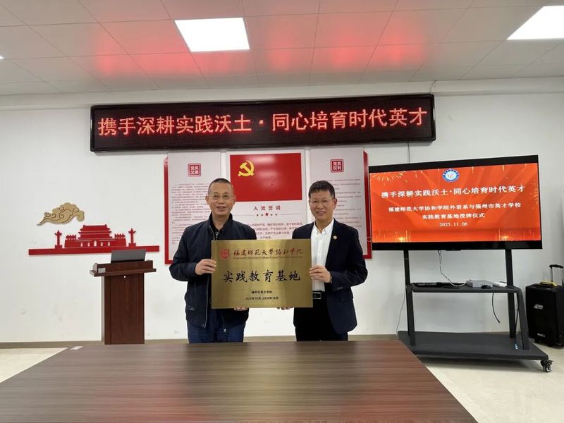 11月6日下午,外语系与福州市英才学校举行党建共建签约暨实践教育基地授牌活动。双方领导班子、部分党员及教师代表共同出席活动。