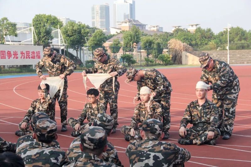 军训学习内容包括队列训练、格斗基础、内务整理、军歌学习、急救技能等多方面的内容。每一个简单的动作的不断重复皆是外语学子们迎来“质的飞跃”的前奏。