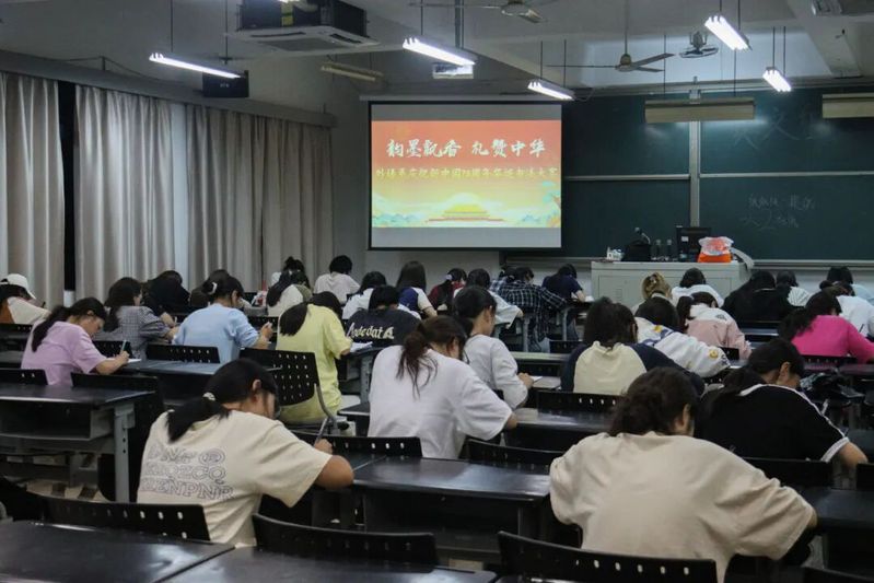 为庆祝新中国成立75周年,弘扬中华文化,践行大书法,外语系结合专业特色,开展了“韵墨飘香,礼赞中华”书法大赛。比赛于9月27日晚上在河西A2-301,河西A2-302,河西A2-303举行,本次比赛面向全体2024级新生,共设置中文组、英文组两个组别。