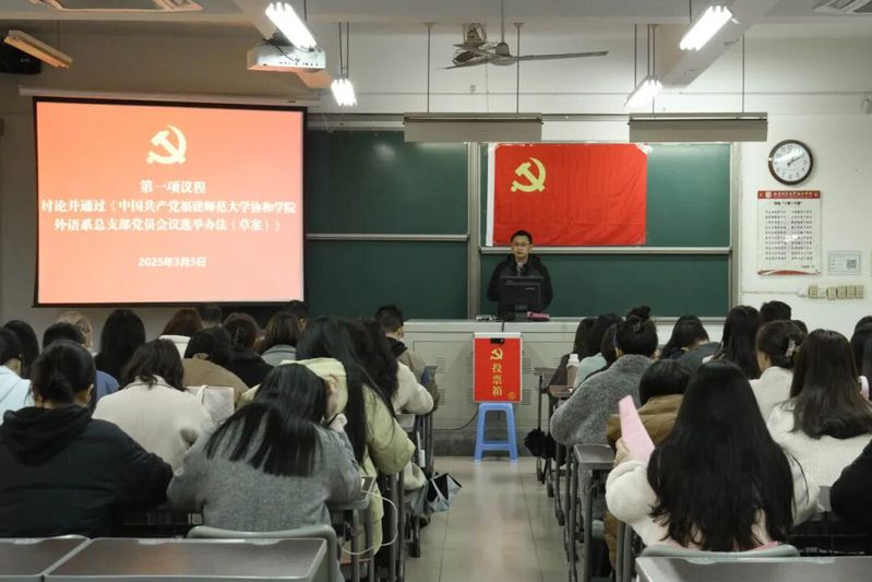 会上,全体党员讨论并通过《中共福建师范大学协和学院外语系总支部党员大会选举办法(草案)》、中共福建师范大学协和学院外语系总支部委员会增补委员候选人名单、总监票人和监票人名单,指定总计票人和计票人名单。