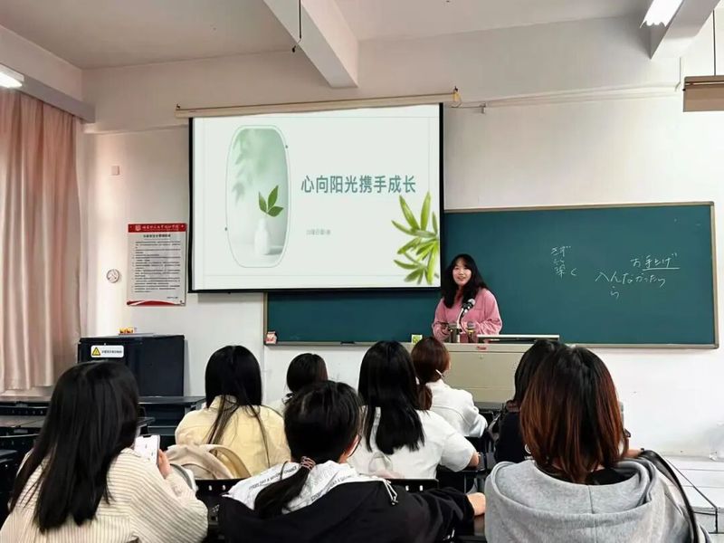 2022级日语专业1班举办了“心向阳光,携手成长”主题班会。班会通过趣味心理测试、讲解常见心理问题及应对策略,帮助同学们深化对自我心理状态的认知,同时开展“倾听树洞”、“优点轰炸”等互动活动,引导同学们表达自我、增进信任。